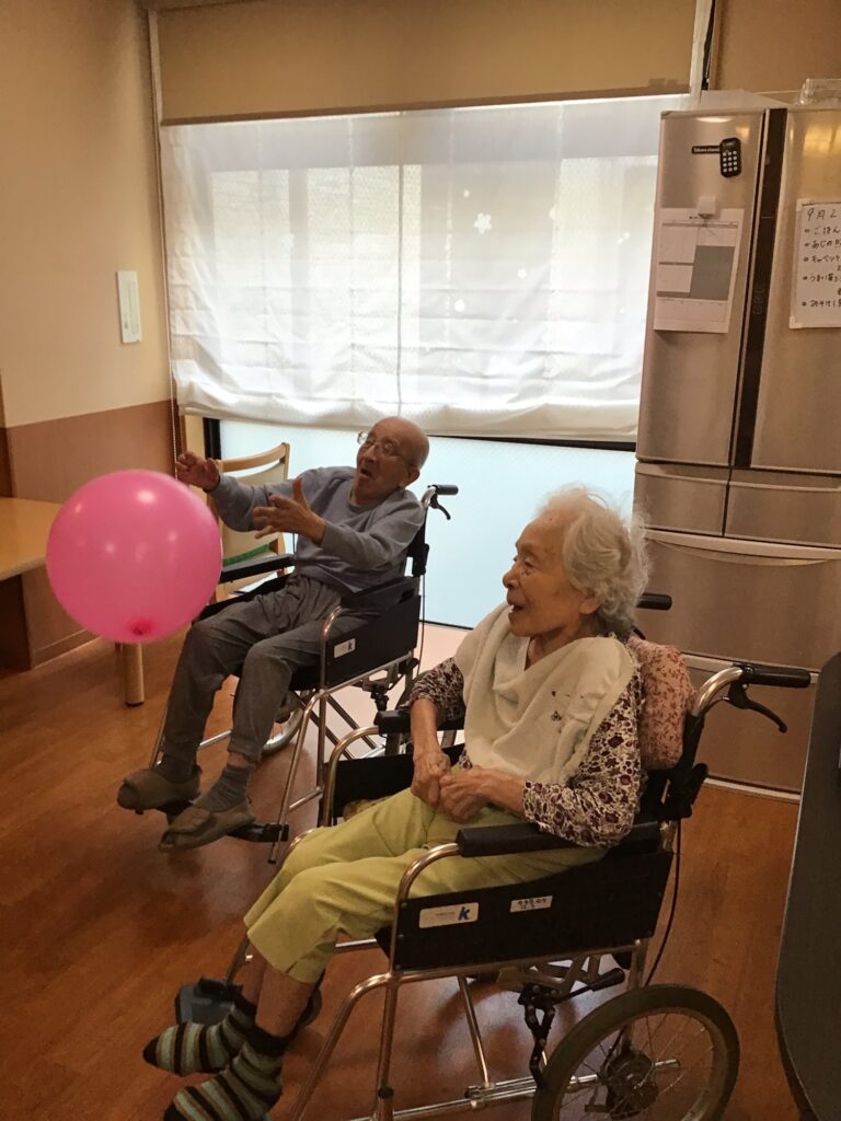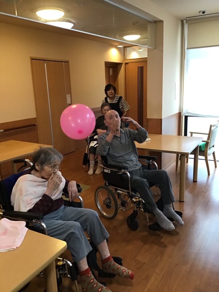 リハビリ先生と皆んなさんが風船バレー遊ぶ🎈。
