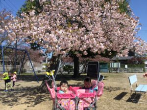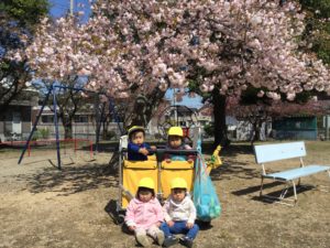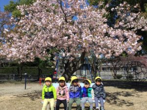 きれいな桜が咲いていたのでクラスごとに集合写真を撮りました♪