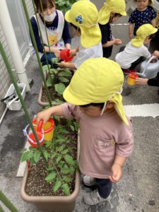 夏野菜も園の裏でぐんぐん生長中!!「大きくなあれ」と水やりしてくれました☆