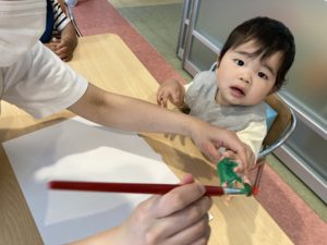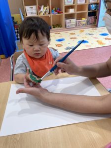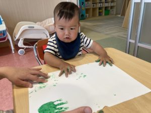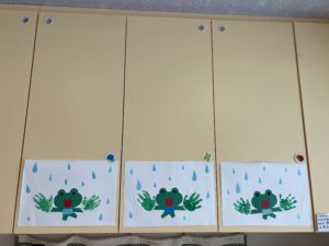 カエルは筆を使い絵の具で塗り、顔はシールで貼りました🐸