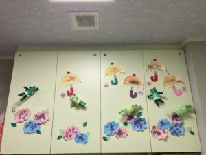 保育室では、マグネットボードに楽しい遊びを展開しています。