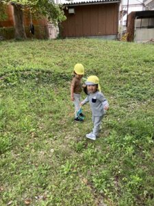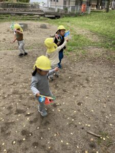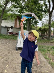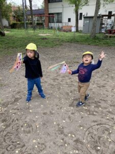 自分たちで作ったこいのぼりが泳ぐ様子を