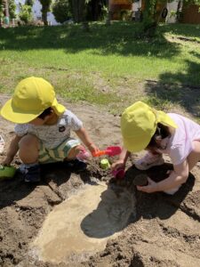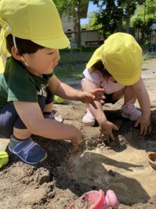 砂遊びが大好きな子どもたち。
