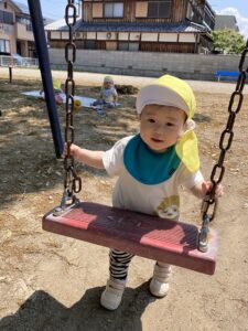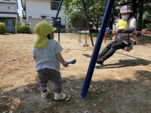 先生と一緒にブランコにのったり、公園の中を歩いて探索したり♪