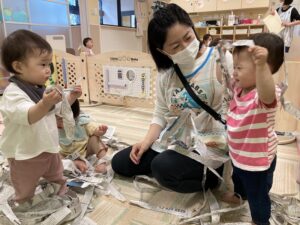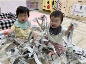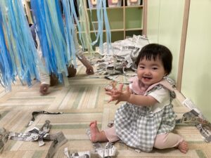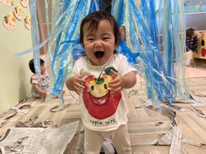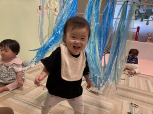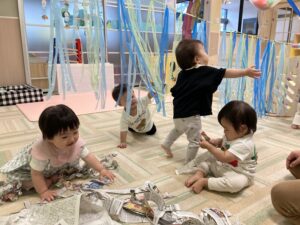 スズランテープのカーテンでも遊びました♪