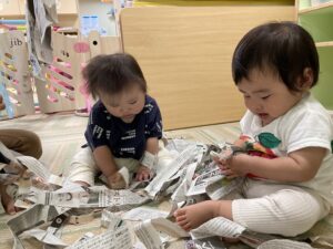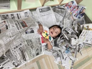 雨の日にはお部屋で新聞遊び(^^)/
