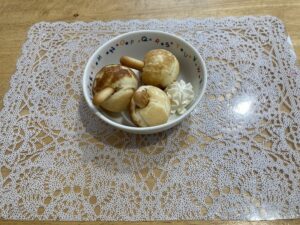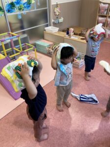 お散歩から帰ってきて、汗をふきふき(*^^*)