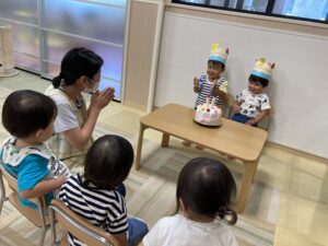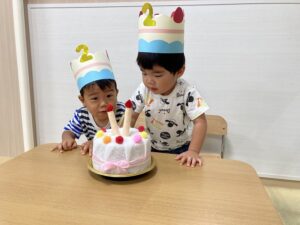 ケーキのロウソクをふ~っと上手にふいていましたよ✨