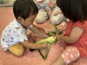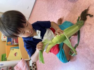 夏野菜のとうもろこしをの皮むきをしました(^^)/