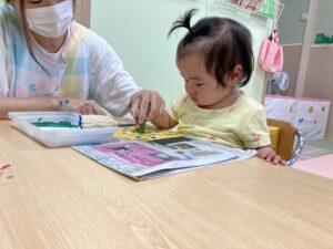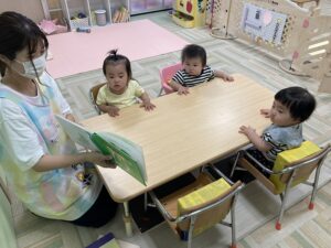 最近は朝のおやつの前に絵本をみんなで見たり、