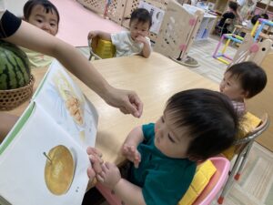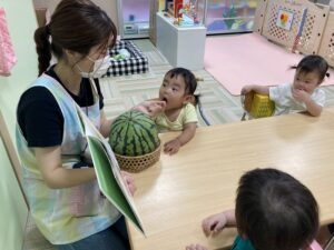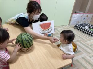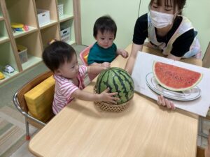本物のスイカもみんなで触ってみました!