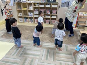 先生の動きをよくみて真似っこ。