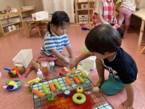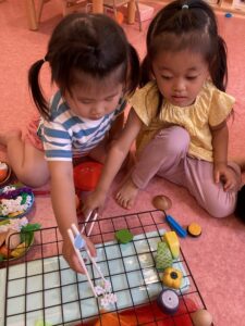 おはしの持つ練習も遊びの中で…☆