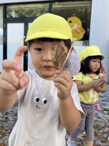 の前で空中を舞う葉っぱを見たり