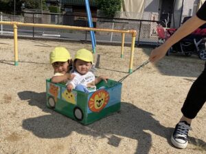 それぞれのクラスが公園へお散歩に行き、戸外遊びを楽しみました♪