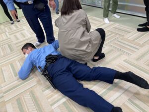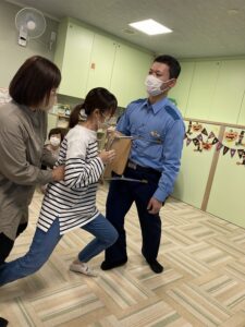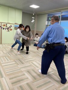 実際に不審者が現れた場合の対応方法を実践をさせてもらいました!(^^)!