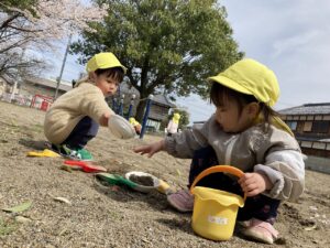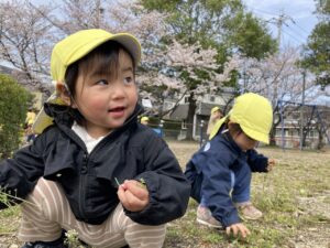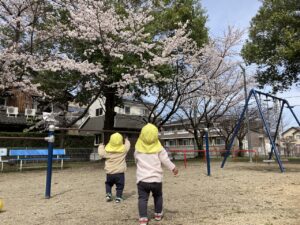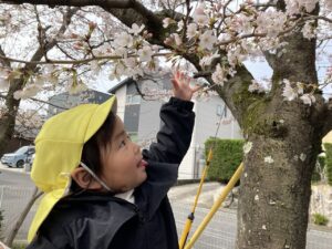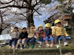 桜の下でひよこ組さんみんなで記念写真(^^)/