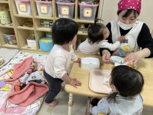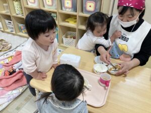 ひよこ組さんも早く食べ終わったお友だちはまだ食べたくて