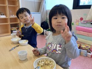 いつも完食のうさぎ組さん、今日で通常給食は最後のお友だちもいて、今日は給食の先生に「おいしかったよ」「ありがとう」と一人ひとりが感謝の気持ちを伝えに行きました(*^^*)